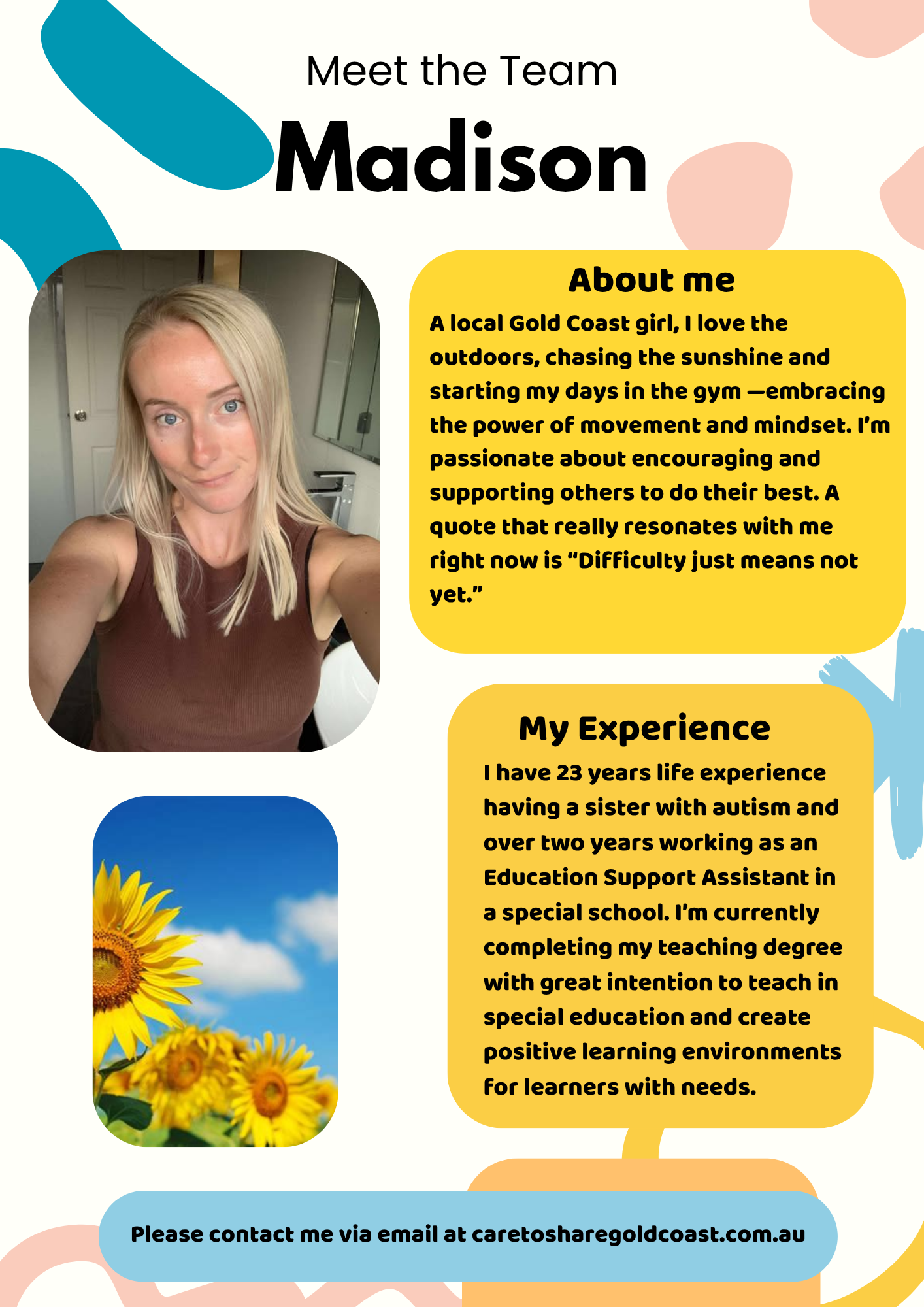 A local family-owned home-based business providing quality care and value-for-money respite for young adults in our community. With over 20 years of experience in the disability sector, we are committed to offering outstanding personalized care and support for all our clients.